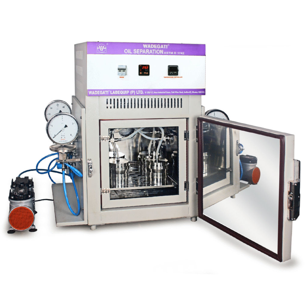 Determines the tendency of lubricating grease to separate oil during storage. Consists of pressure bleeding test cells with air pressure regulator system and constant temperature air cabinet.